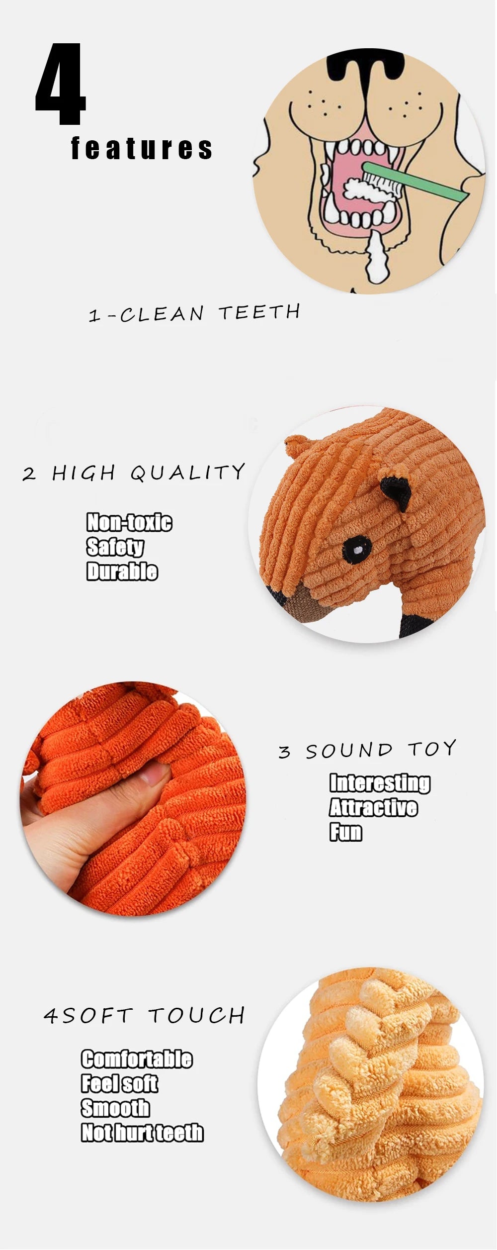 Dog Corduroy Toys Animal Shape Plush Squeaky Chew Bite Resistant Toy Pets Accessories Supplies for Small Large Dogs