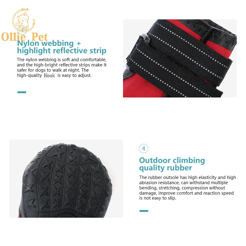 4PCS Dog Shoes Waterproof Anti-Slip Rain Boots Warm Snow Reflective for Small Large Pet Sports Training Protect Pet Feet